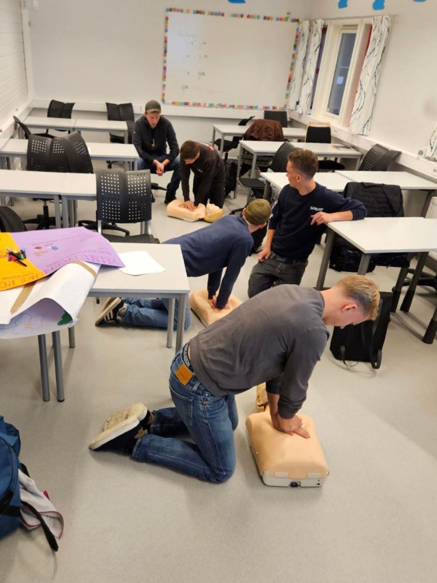 Denne uken har elever og lærer på VG2 Helsefagarbeider holdt førstehjelpskurs for VG2 Anleggsteknikk.
